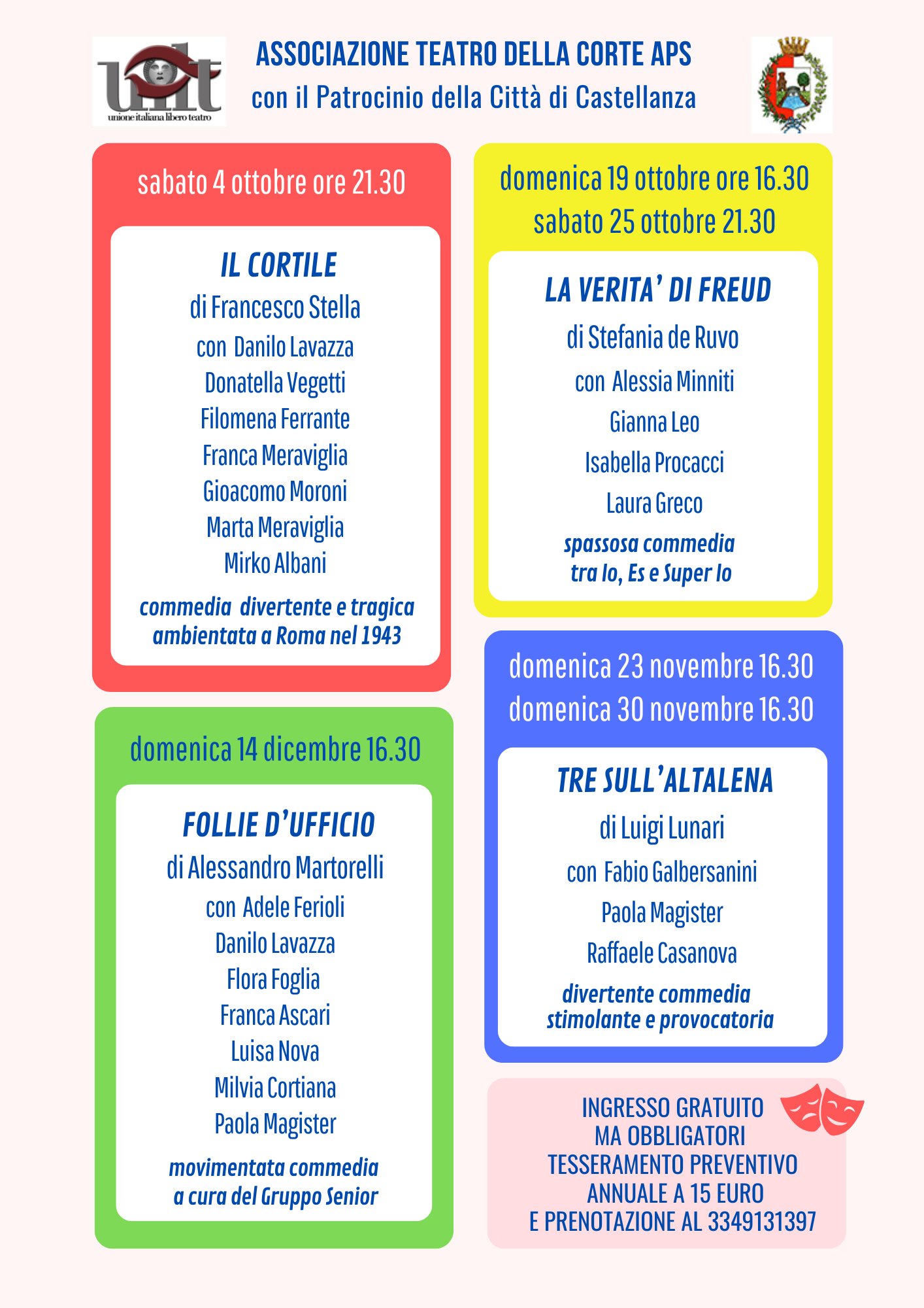 L’accesso agli spettacoli richiede la tessera associativa annuale, valida fino al 31 agosto 2026 al costo di 15 euro, e la prenotazione del posto. Per tesserarsi è necessario contattare l'Associazione al numero 334.91.31.397 e compilare il modulo di iscrizione.
