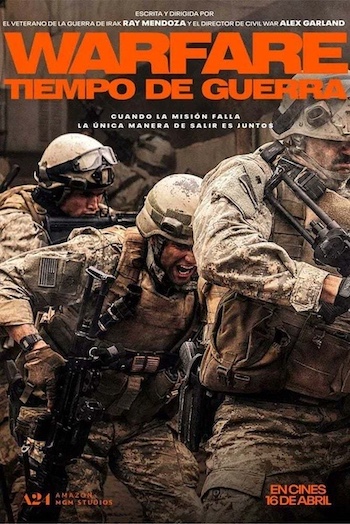 Le premesse per uno sparatutto ci sono, la differenza, non trascurabile, è che le vittime sono reali. Dopo una premessa che è breve ma fondamentale, con i commilitoni intenti a ridere e sbavare di fronte a una clip musicale sexy ("Call on Me" di Eric Prydz), Garland e Mendoza precipitano lo spettatore in un episodio marginale del conflitto iracheno senza fornire spiegazioni, adottando una prospettiva interna ai soldati statunitensi, con un realismo maniacale per il dettaglio tattico (fino all'utilizzo del più oscuro degli acronimi del lingo militare). Immergendosi così profondamente in medias res, lo spettatore si trova privato del contesto e obbligato a porsi domande inedite, immedesimandosi con la condizione dei soldati in difficoltà. L'antica critica del "videogioco già giocato" trova quindi una nuova forma di utilizzo: come virtù, anziché come difetto. Perché per Garland e Mendoza il videogioco-già-giocato-da-qualcuno è l'unica metafora possibile per una tecnica e una tattica di combattimento (il titolo è Warfare, infatti) che hanno rimosso il lato umano fino al puro nonsense.