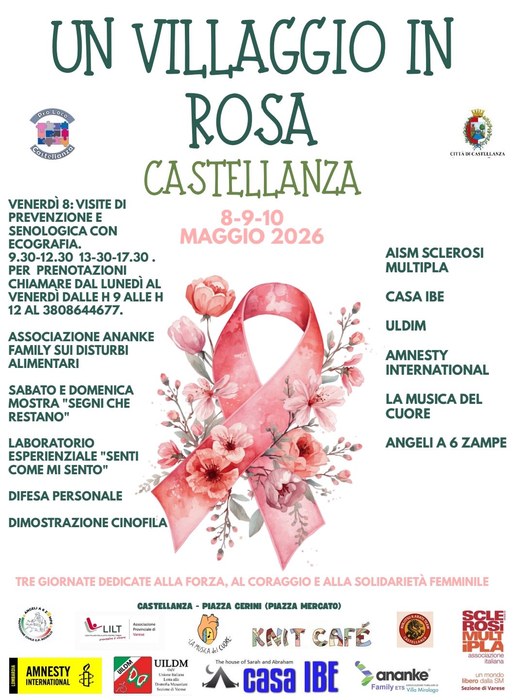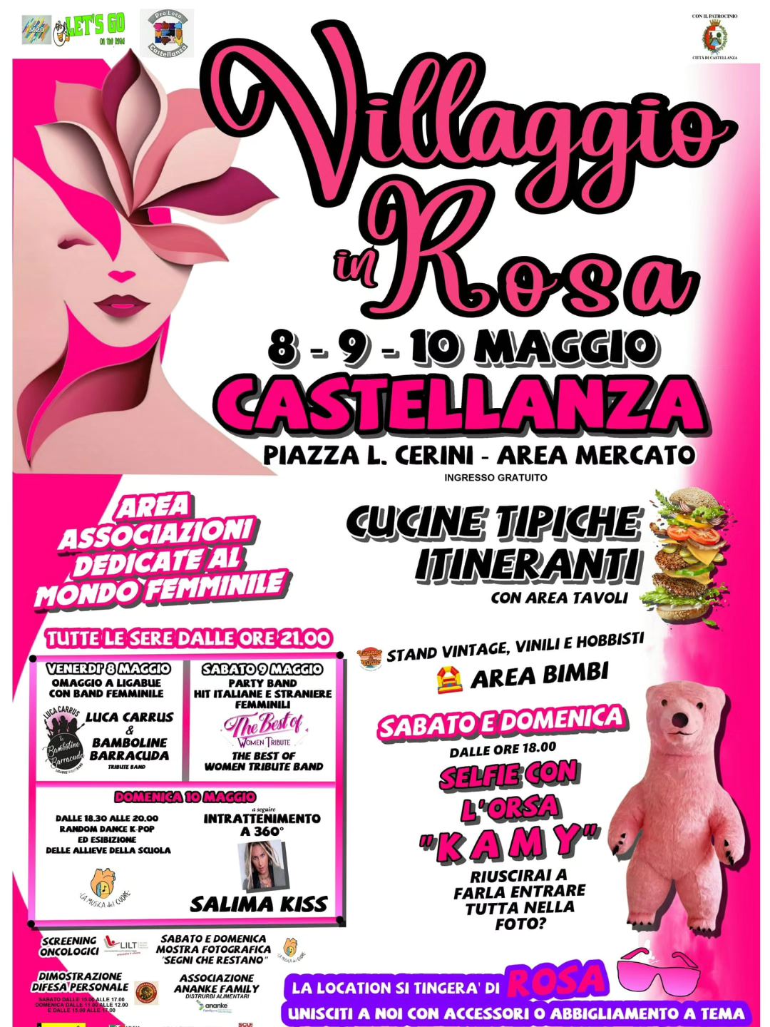 Dall’8 al 10 maggio 2026, in piazza Cerini (area mercato), Castellanza ospita “Villaggio in Rosa”, iniziativa promossa dalla Pro Loco con il patrocinio della Città di Castellanza, che propone tre giornate dedicate al mondo femminile, alla salute, alla cultura e al tempo libero.
